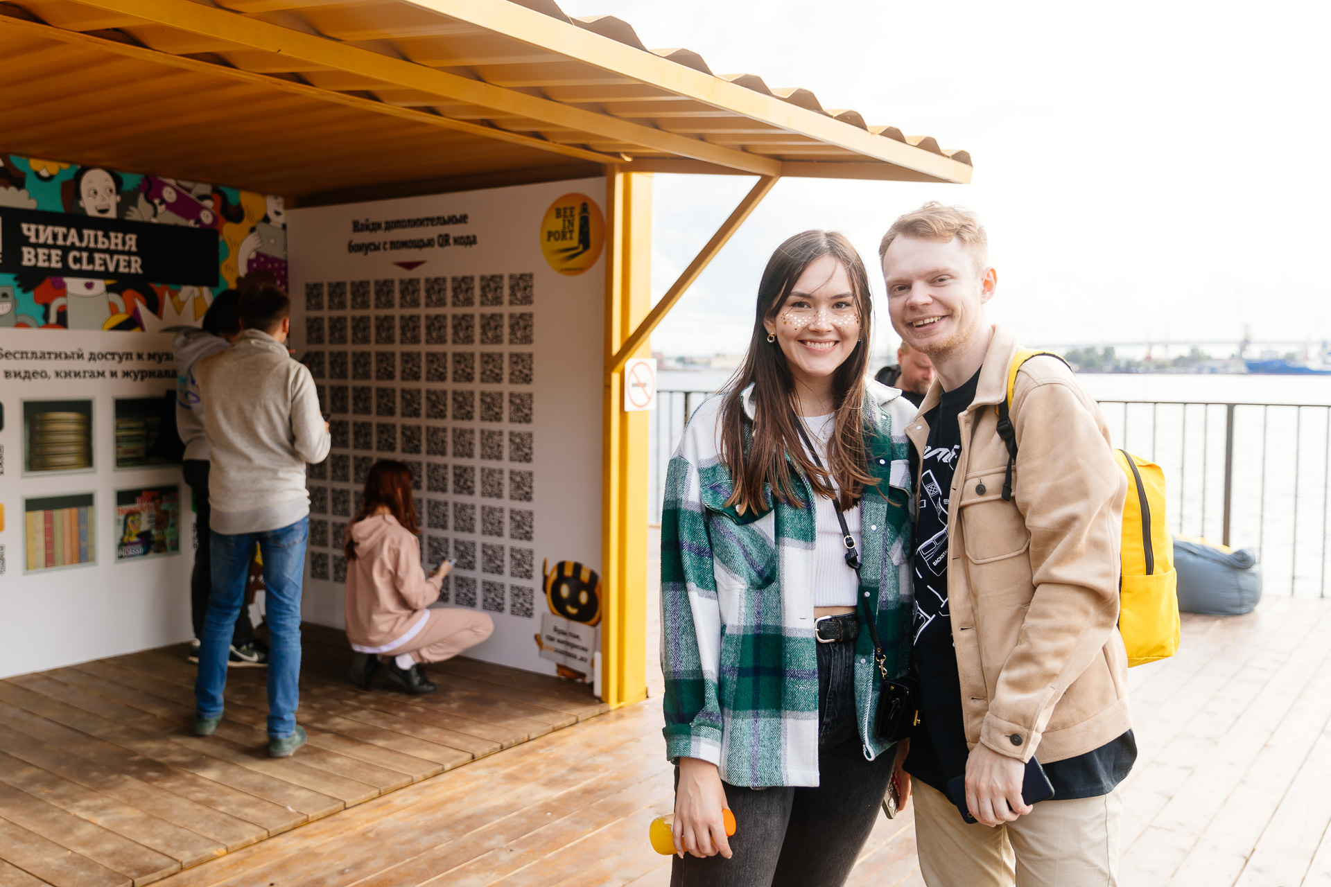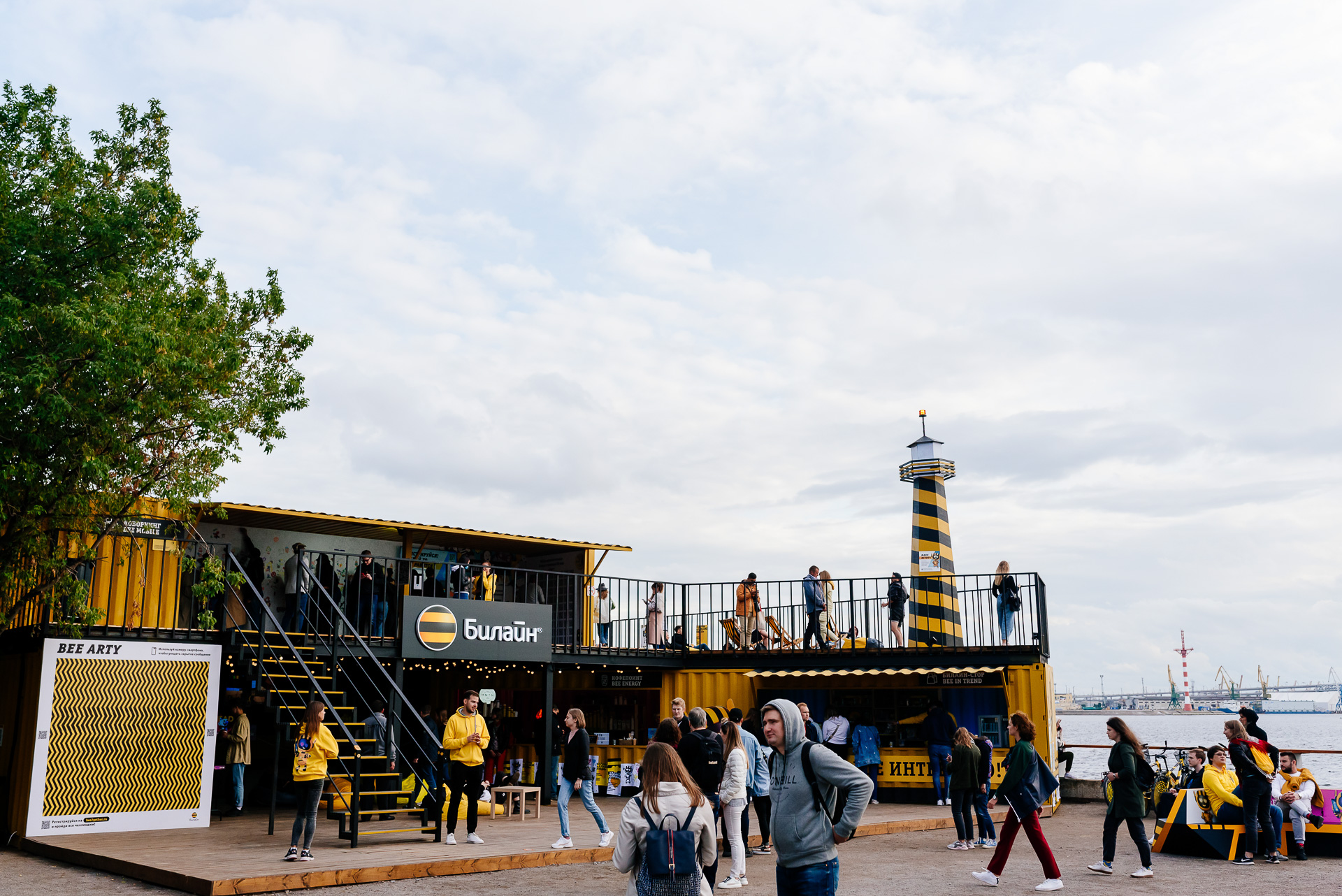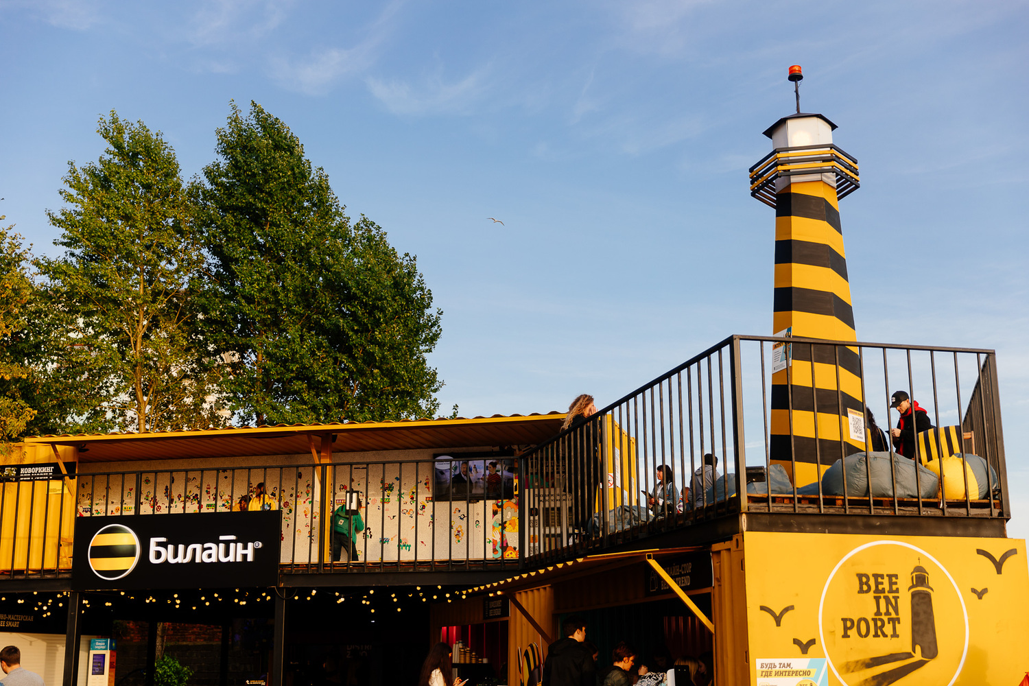 Петербургская бренд-зона в порту «Севкабель» называется BEE IN PORT, его центральным элементом стал маяк. Здесь любой желающий мог позаниматься йогой и зумбой, протестировать игры в VR и сеть 5G, посетить тренинги и мастер-классы и многое др.
