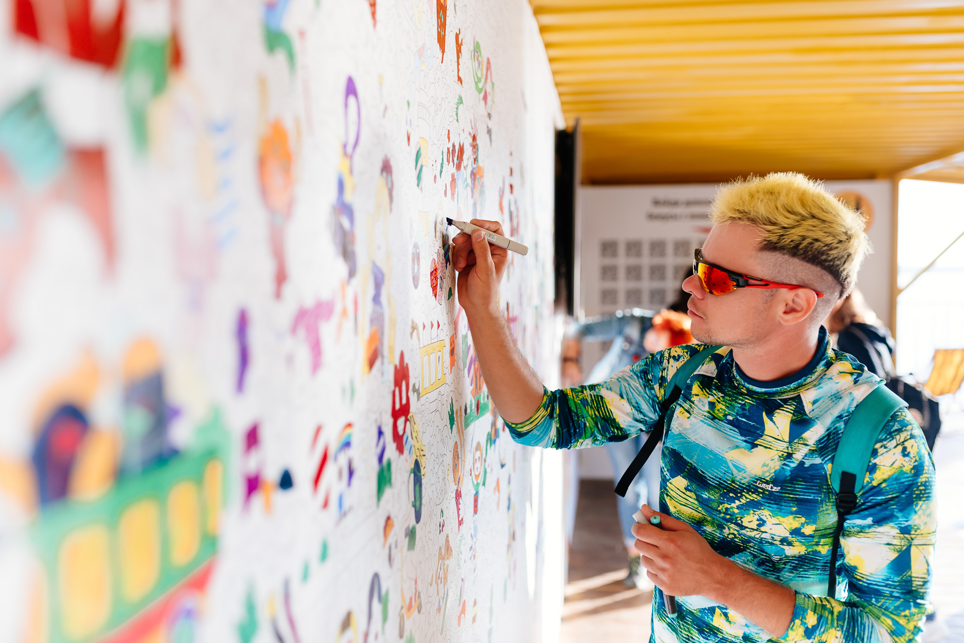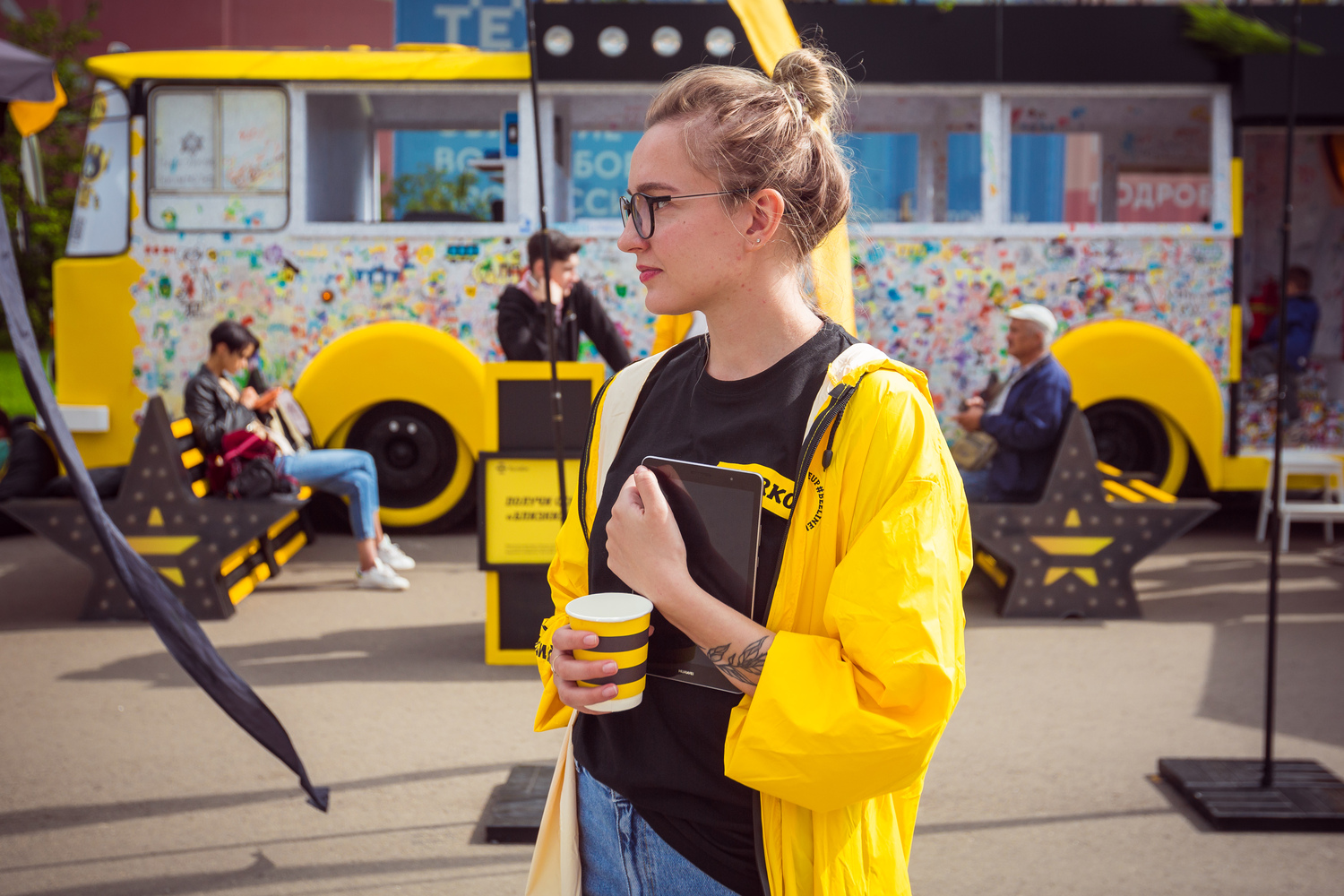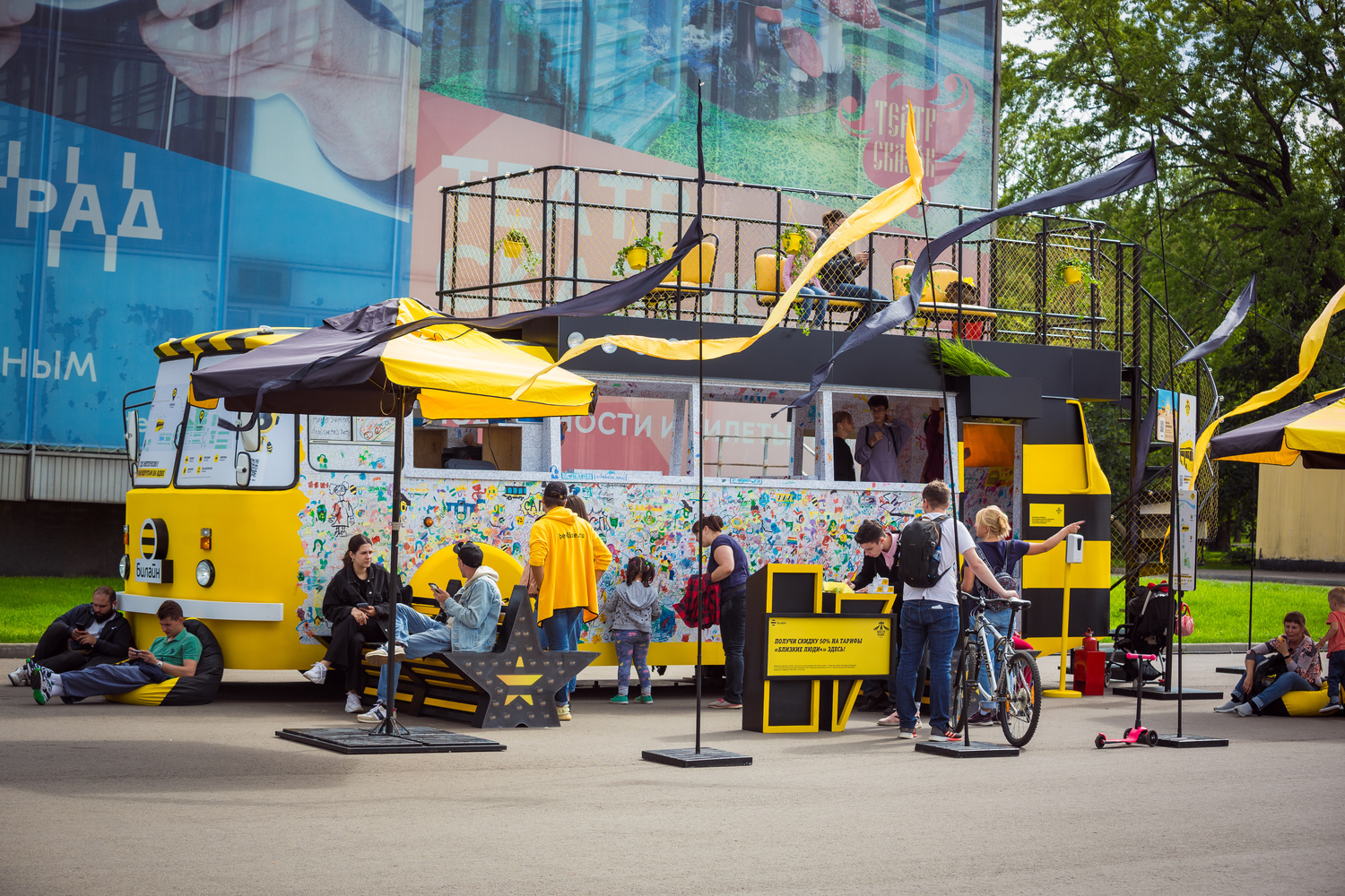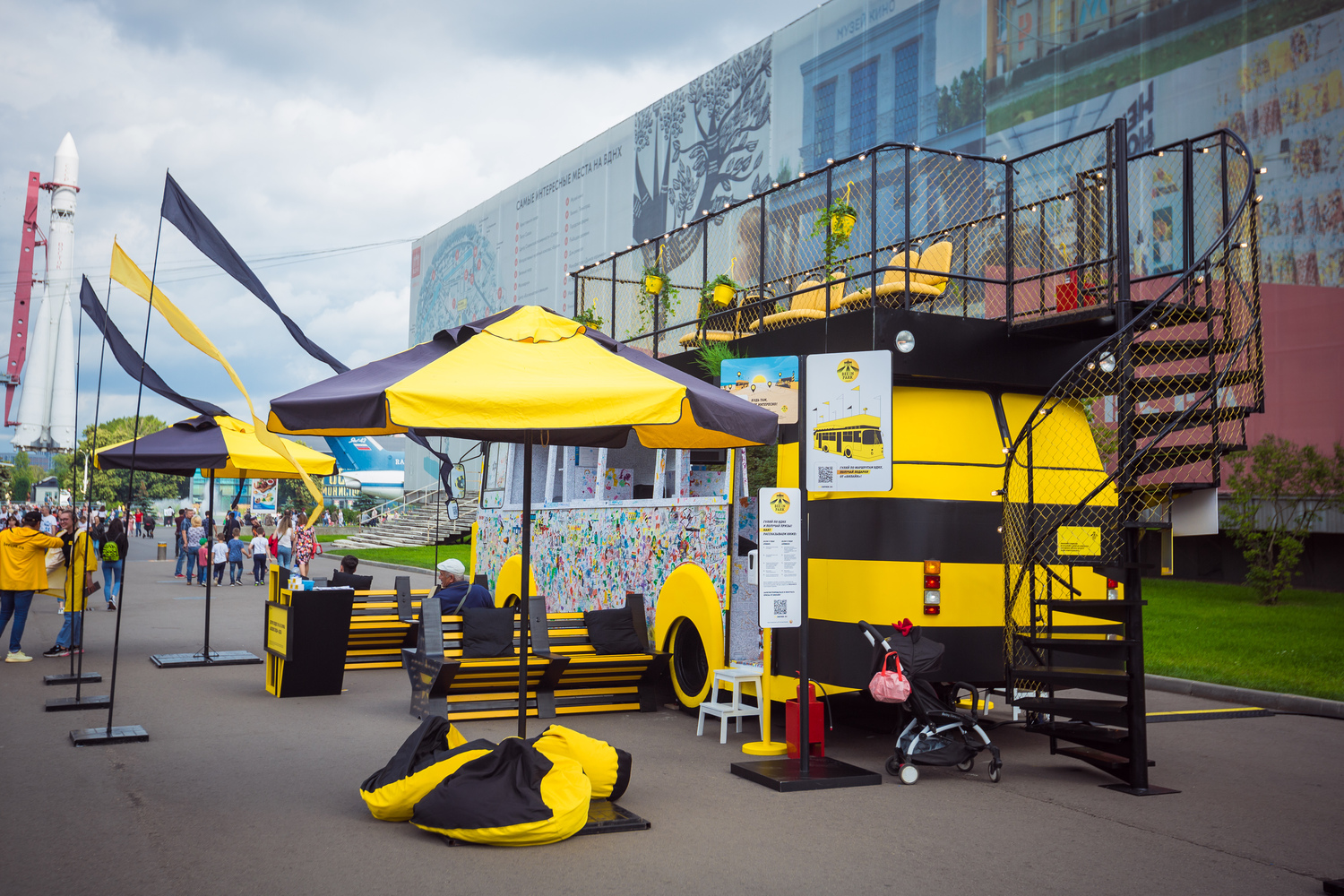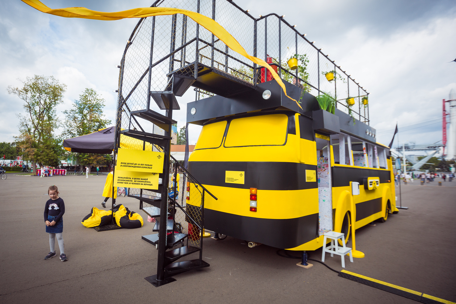 Пространство на территории ВДНХ получило название BEE IN PARK. Здесь посетителей ждал яркий арт-объект: двухэтажный автобус, в котором можно отдохнуть в уютной зоне отдыха с пуфами и лавочками-зарядками, сделать необычные снимки в фотозоне, поиграть в настольные игры.
