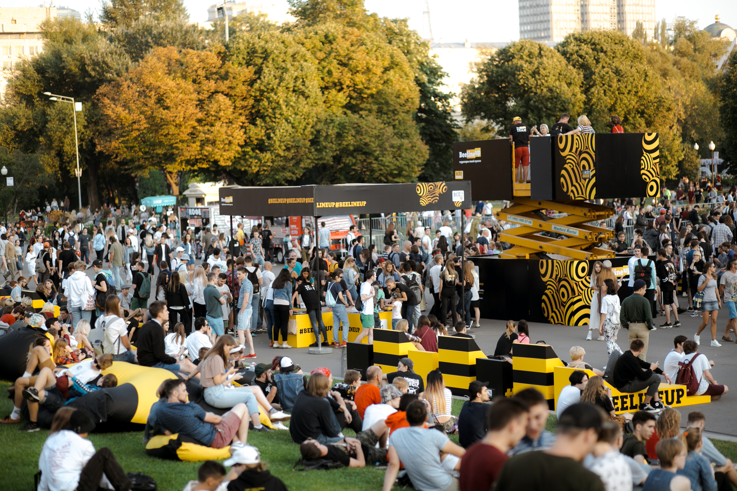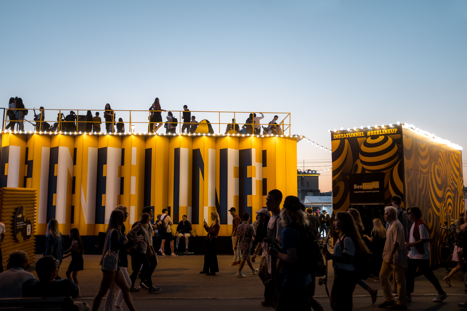 Проект «BeelineUP. Территория твоей музыки», который демонстрировал преимущества тарифа, был задуман как фестиваль в фестивале — зона отдыха со встроенными в лежаки наушниками, стробоскоп-коридор Instatunnel, музыкальная студия Sound by Playtronica, караоке-душ с видеозаписью, уличный кинотеатр с фильмами о музыкальной индустрии, подъемник LevelUp для лучших высотных фестивальных фотографий, пункт swap-обмена «Здесь и сейчас» и главная сцена BeelineUP — зона виртуальной реальности, внутри которой можно было оказаться на концерте любого исполнителя.