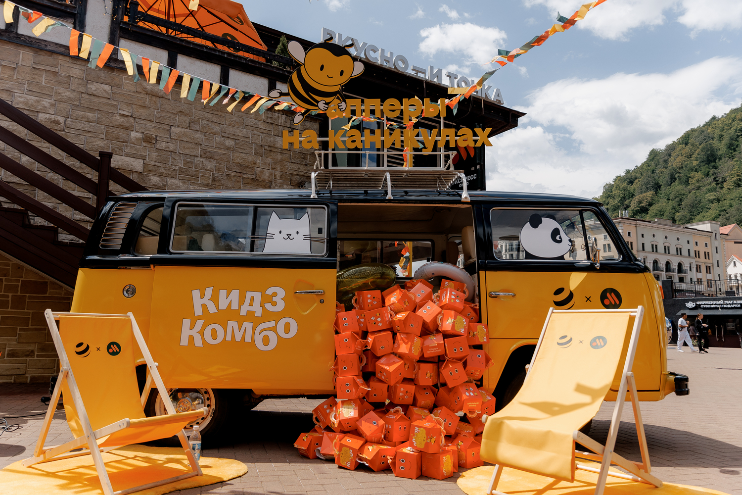 В каждом из городов, где останавливался наш аппербас, была установлена интерактивная зона, где гости могли получить подарки от апперов и сфотографироваться на память с ростовыми куклами, а также глиттер зона, где визажисты наносили гостям аквагрим. Среди подарков были воздушные шары, маски, раскраски и стикерпаки, а главный приз - брендированная сумочка для большой картошки. В развлекательной зоне гости могли ознакомиться с онлайн-игрой, отдохнуть на шезлонгах и сделать яркие снимки на фоне нашего аппербаса.