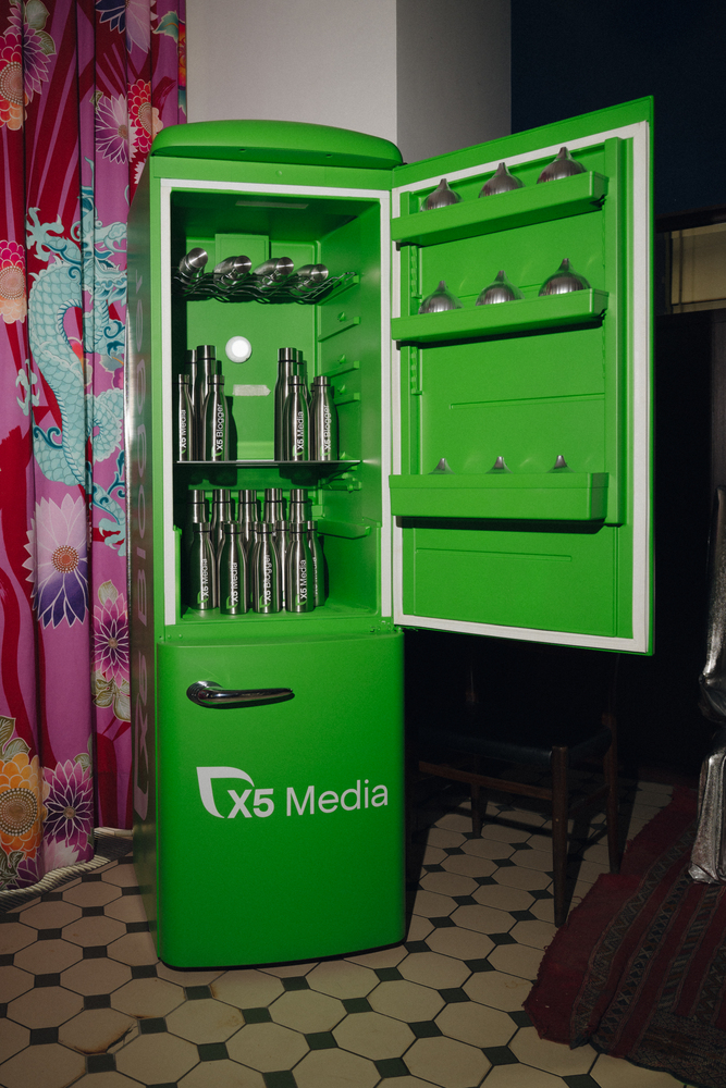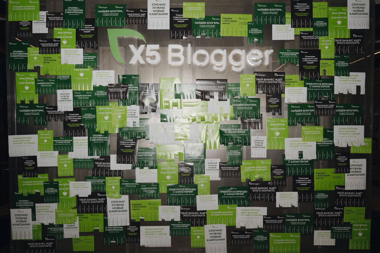Презентация от команды X5 Media, концептуальный кейтеринг, гранжевая фотозона и самобытный подарочный мерч – металлические кружки с пирсингом, символизирующие смелость, дерзость и креативный подход платформы X5 Blogger к рекламе.