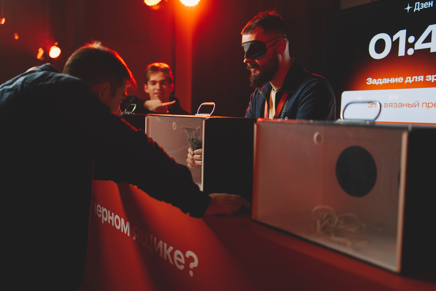На ивенте блогеры встречались со старыми друзьями, знакомились с новыми, собирали Дзен-мэтчи, а потом пилили контент, идеи для которого доставали из вендингового автомата. Отгадали всё, что было в чёрных ящиках, и собирали лучшие моменты вечера на плёнку. На автор-пати работала кастом-станция — домой гости унесли не только яркие впечатления, но и мерч.