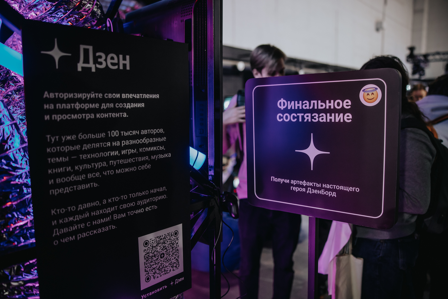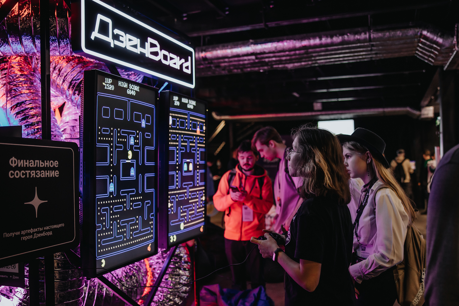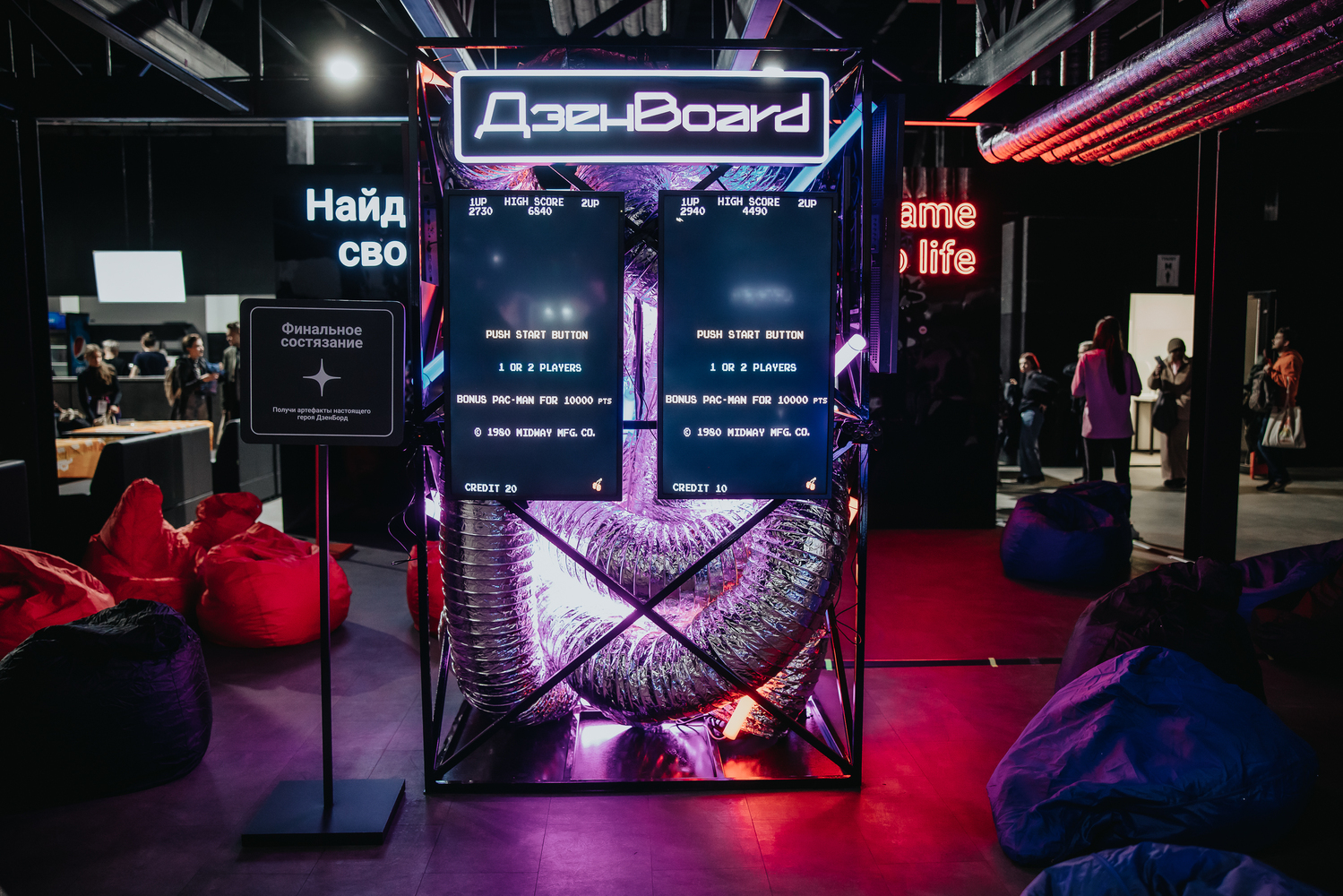 Команда Дзена хотела заинтересовать участников фестиваля и привлечь новых авторов на платформу. Мы создали ДзенБорд — свой альтернативный мир, где живут игры. Поделили его на зоны и подобрали игры, в которых можно залипнуть на весь день. За участие в активностях игроки получали не только удовольствие, но и возможность выиграть мерч от Дзена.