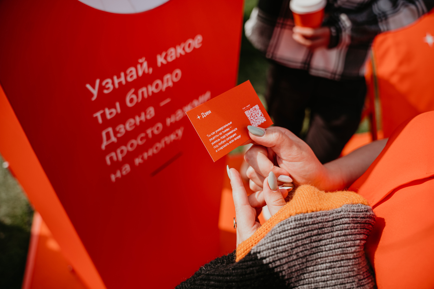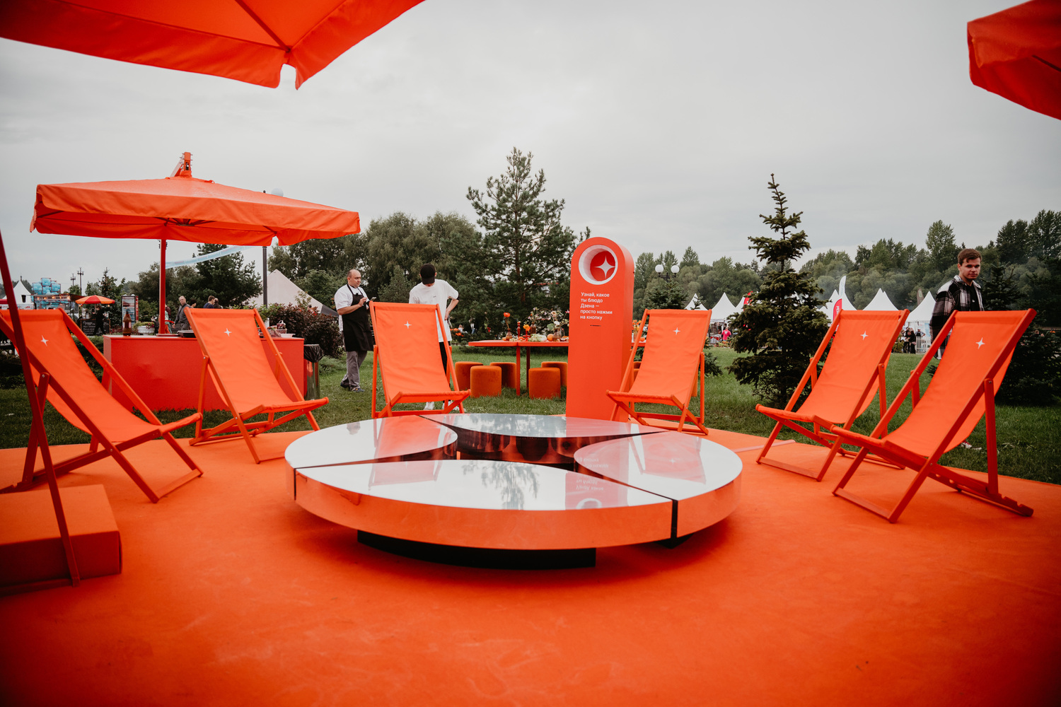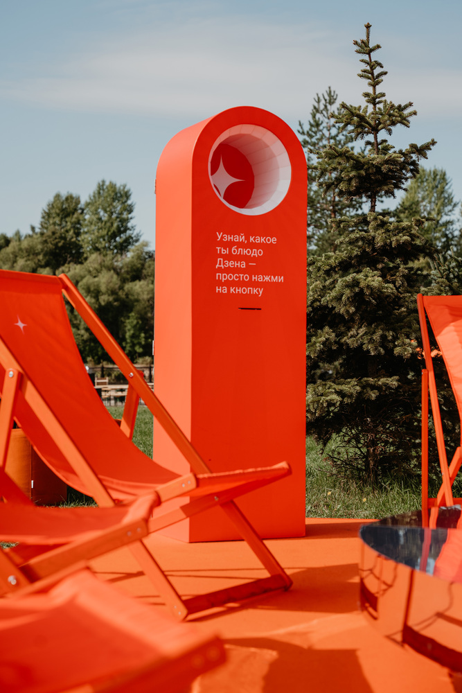 Мы помогали Дзену в реализации их идеи, создав функциональную монохромную зону отдыха с кафе. В пространстве бренда расположили два фотогеничных спота: зеркальный арт-объект, оформленный в виде логотипа платформы, и общий стол, украшенный цветами и фруктами. Больше всего внимания привлекала станция с фуд-предсказаниями. В карточках гости узнали, на какое блюдо похожи, и получили QR-код с рецептом для его приготовления.