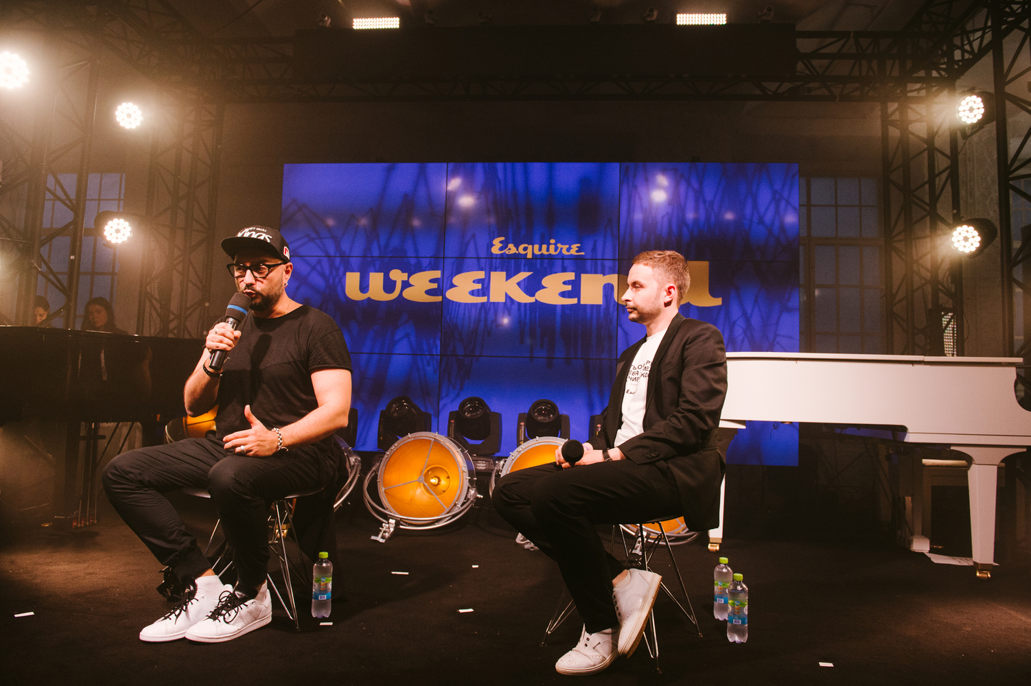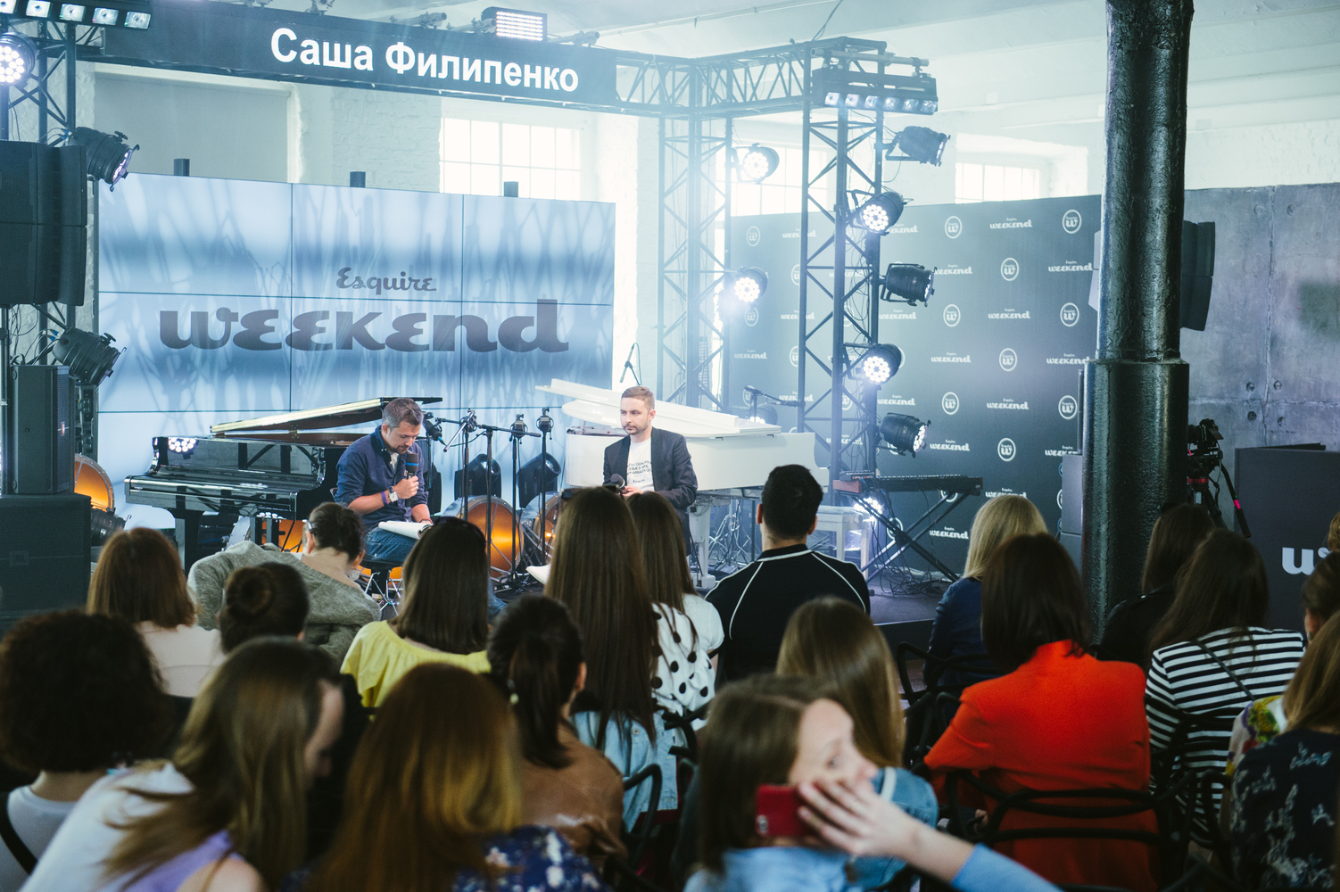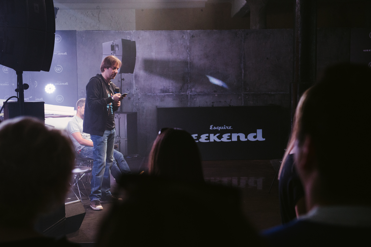 Esquire Weekend был задуман как ожившая и объективизированная в пространстве версия журнала Esquire. Влиятельные в своих сферах публичные фигуры участвовали в оживших рубриках, представленных отдельными тематическими зонами, — паблик-толках, перформансах, музыкальных сетах. Сергей Капков, Кирилл Серебренников, Николай Усков, Кирилл Рихтер, Талгат Баталов, Дмитрий Глуховский, Александр Цыпкин, Антон Севидов, Иван Дорн и сам Сергей Минаев в соавторстве с гостями мероприятия стали символами материализованных глав и ценностей культового издания.