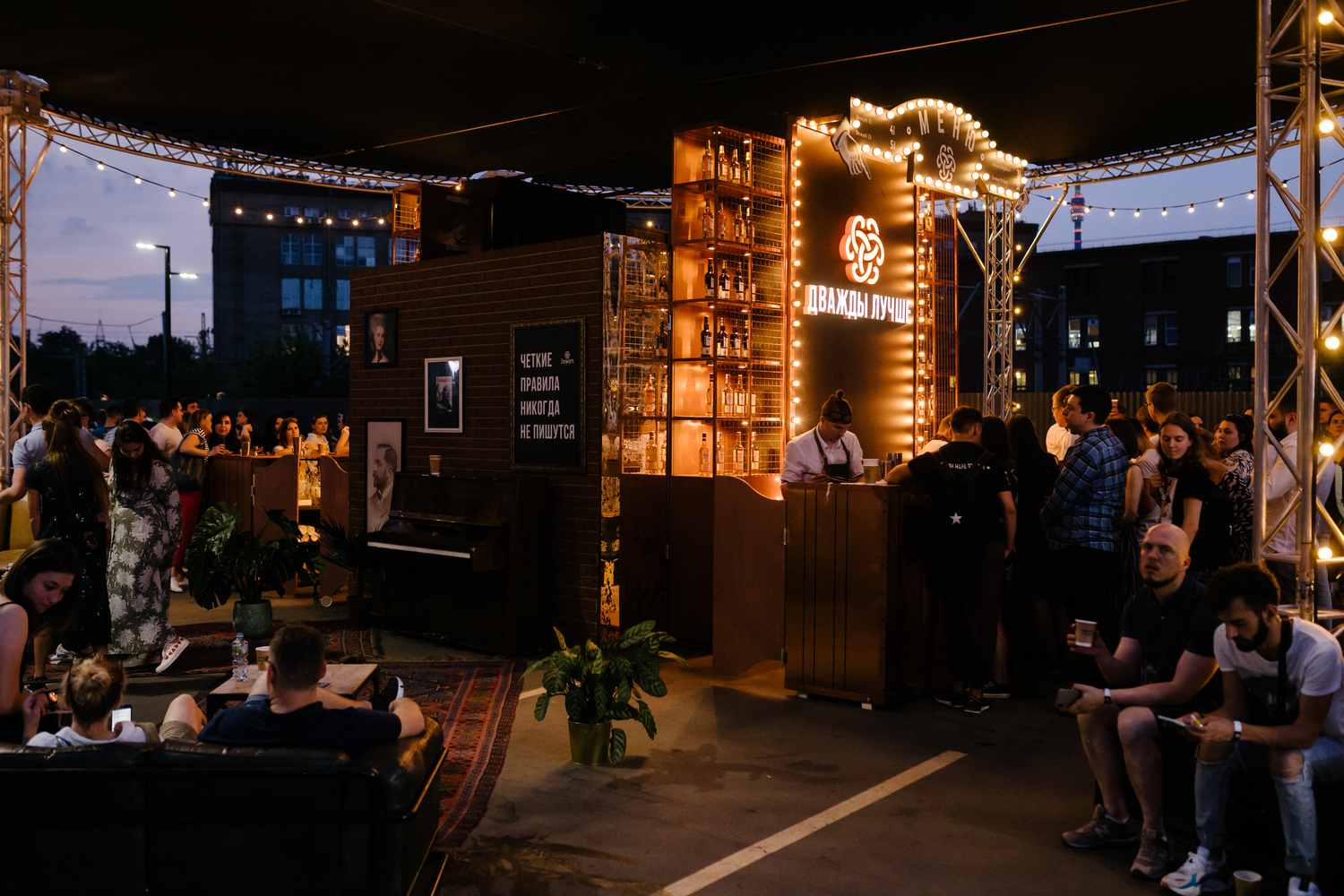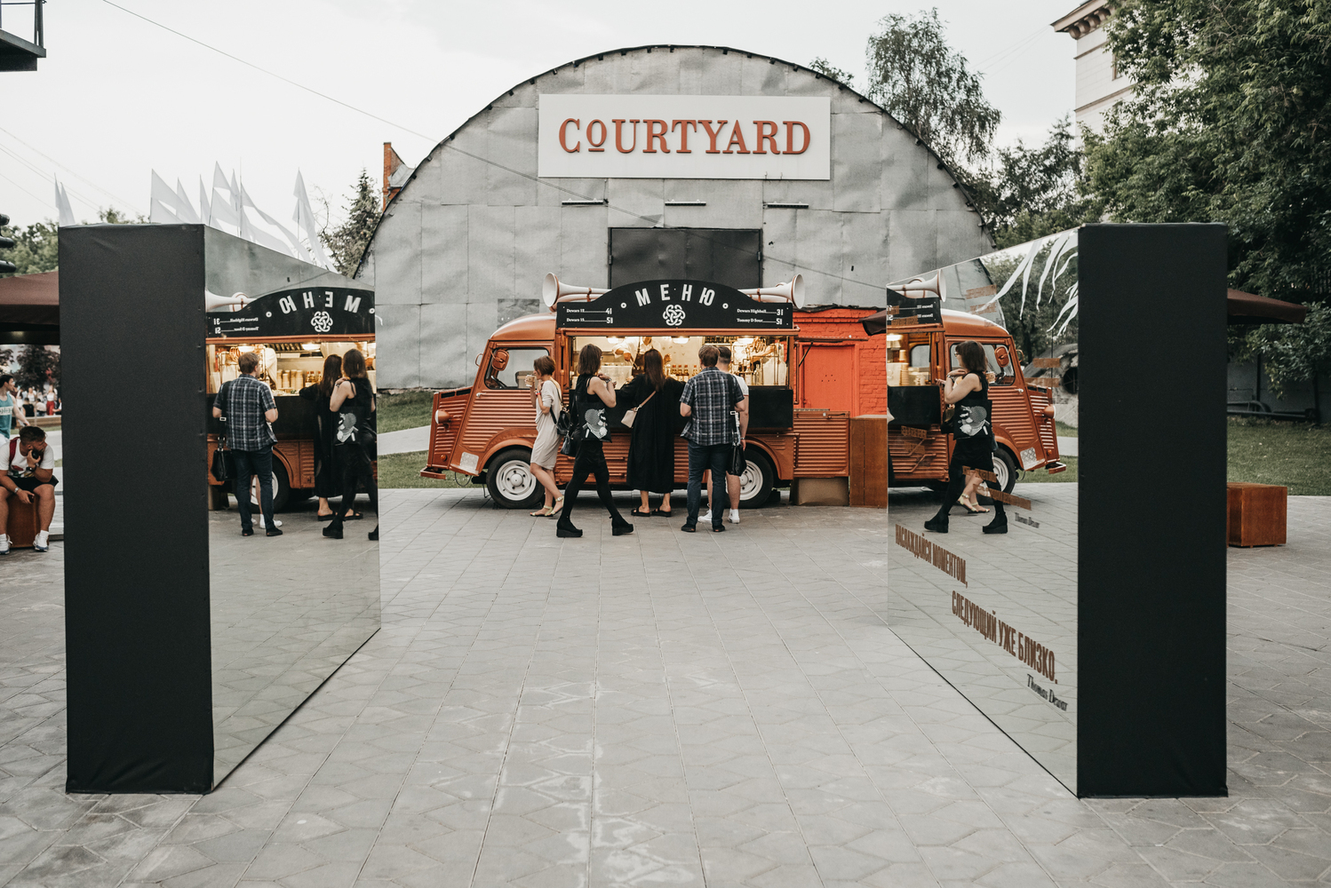 Второй бар мы замаскировали под олдскульный фуд-трак, рядом раскидали дуальных сидений и зонтиков, добавили парочку зеркал – друг напротив друга. Бесконечное отражение, инстаграм, лайки, красота.