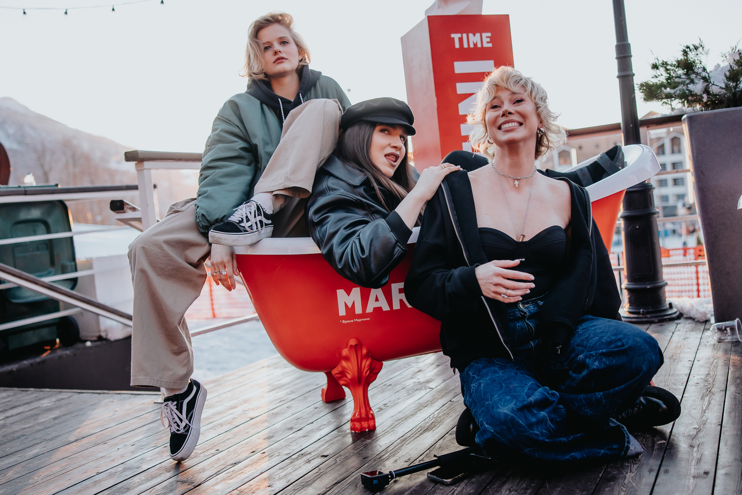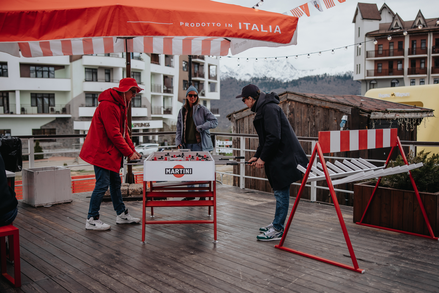 Терраса «Груши» превратилась в большое пространство MARTINI TIME, где гости могли поиграть с друзьями в кикер и кольцеброс в зоне плейграунда. На террасе расположили фотозону с яркими ваннами и комьюнити-стол, вдохновляющий на теплое общение. Бары и лаундж-зоны отелей PARK INN и AYS! на время фестиваля были усилены элементами брендинга MARTINI.
