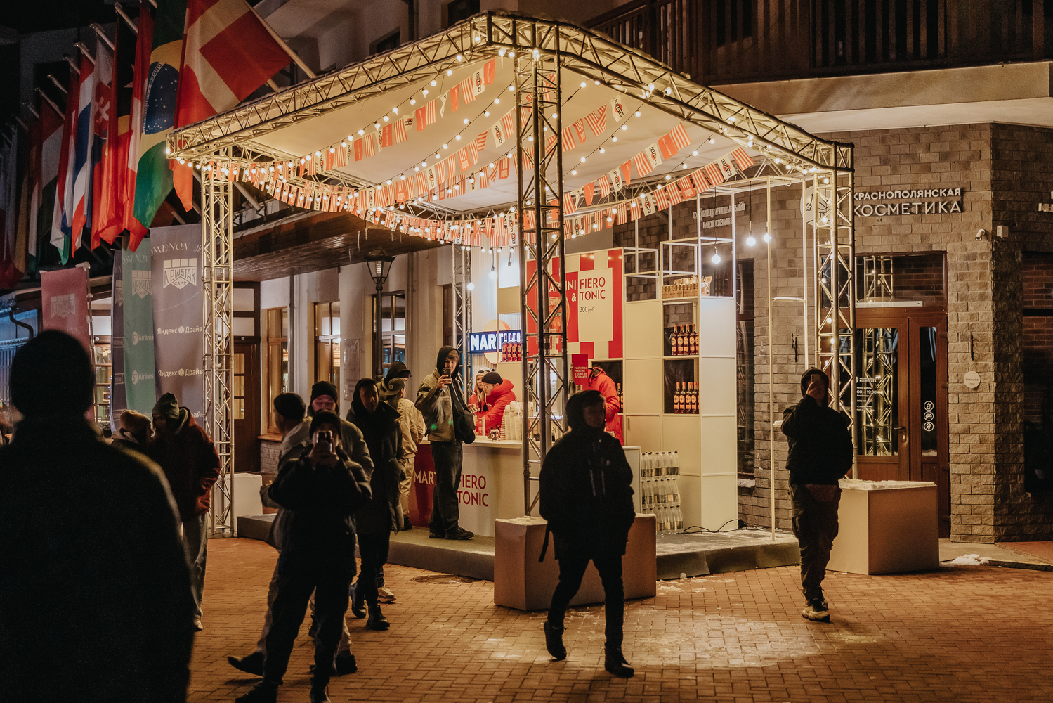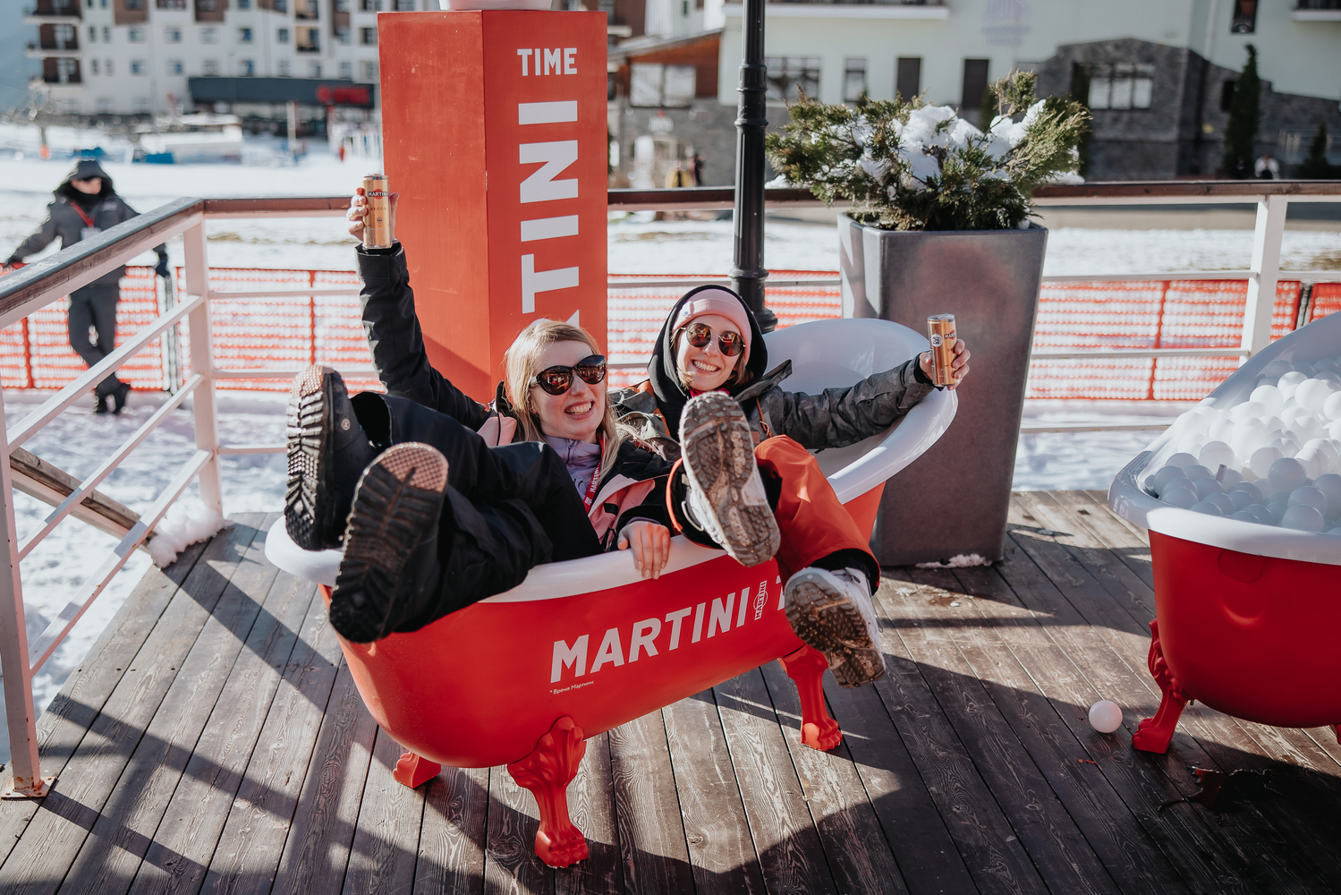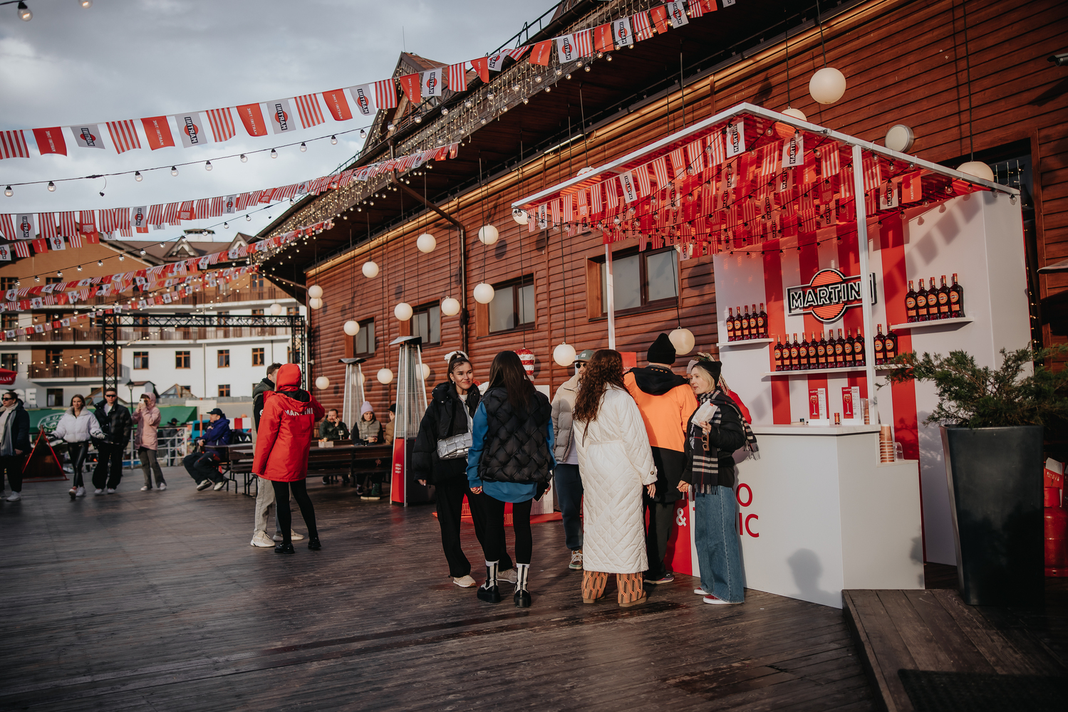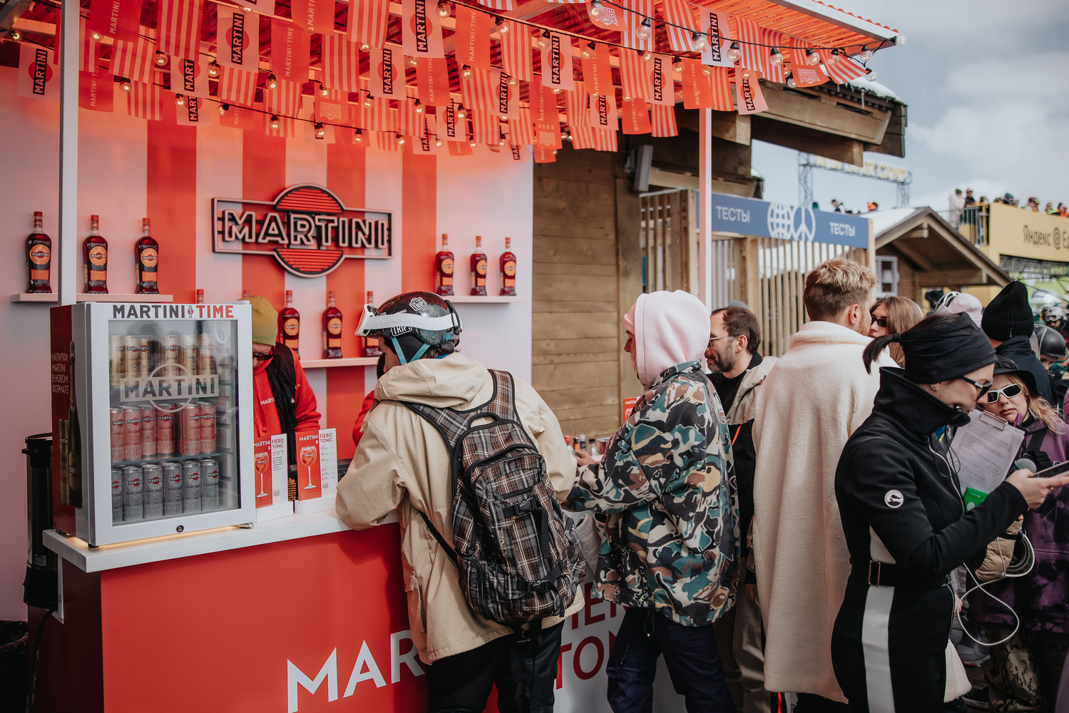 Мы с бренд-командой MARTINI придумали и реализовали все — от оформления баров и активаций до холдеров для ски-пасов и стикеров настроения. На «Роза Хутор» бренд появился в разных зонах фестиваля, так мы получили пять точек MARTINI.