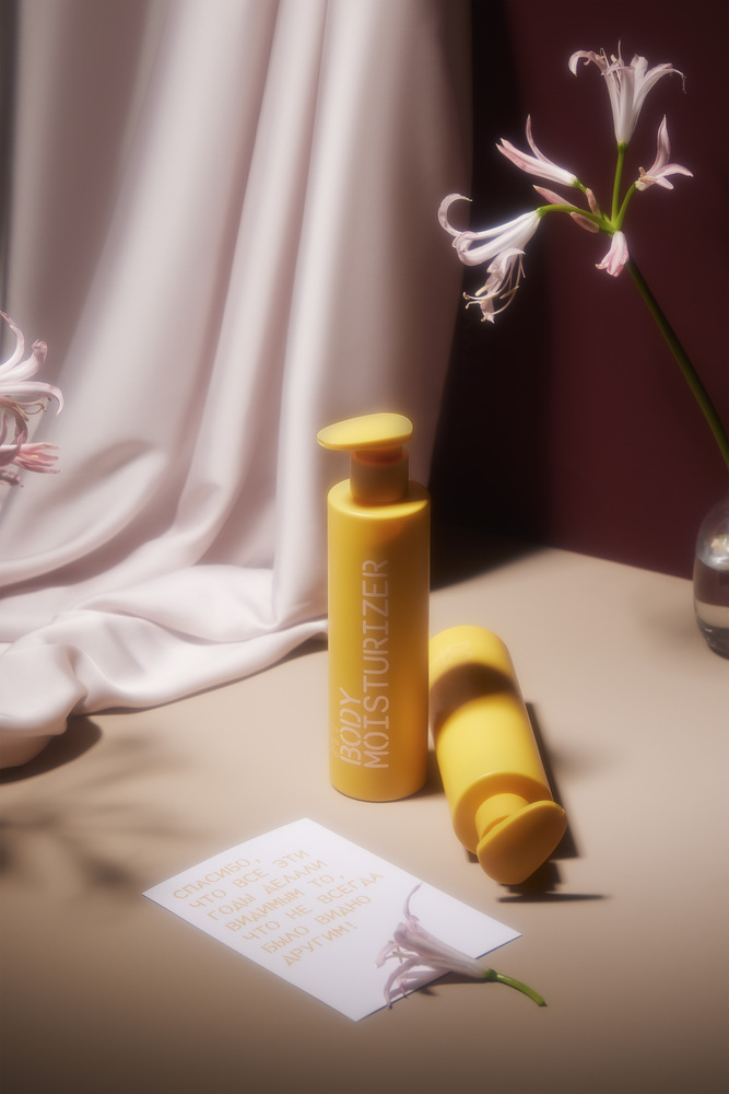 Внутри подарочного набора новое гель-масло, крем для тела, открытка и кулон с отсвечивающейся надписью Don't Touch My Skin. Кадры со съемки набора буквально переносят в теплую весну, а фирменные цвета бренда отсылают к телесности, умиротворению и природе.