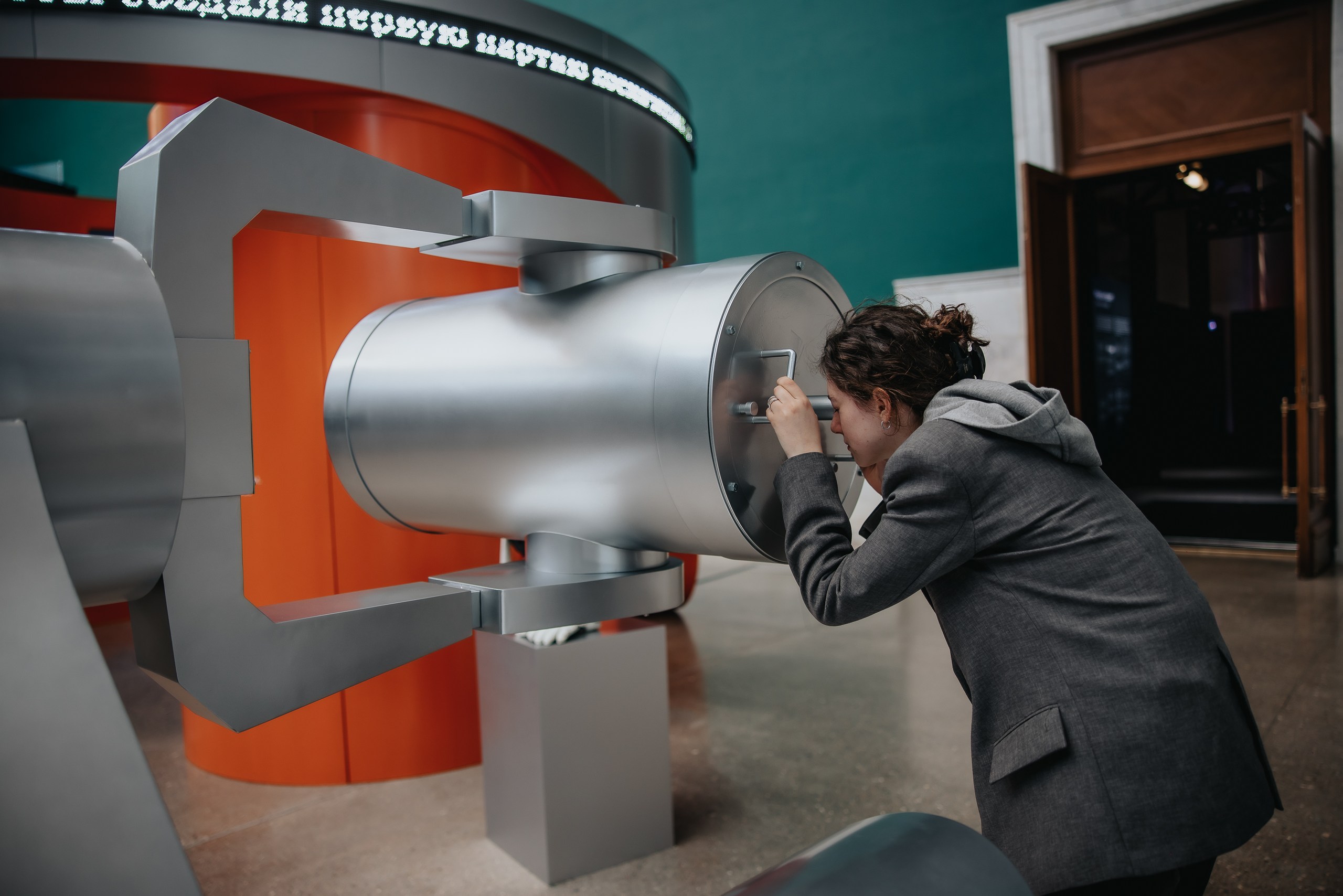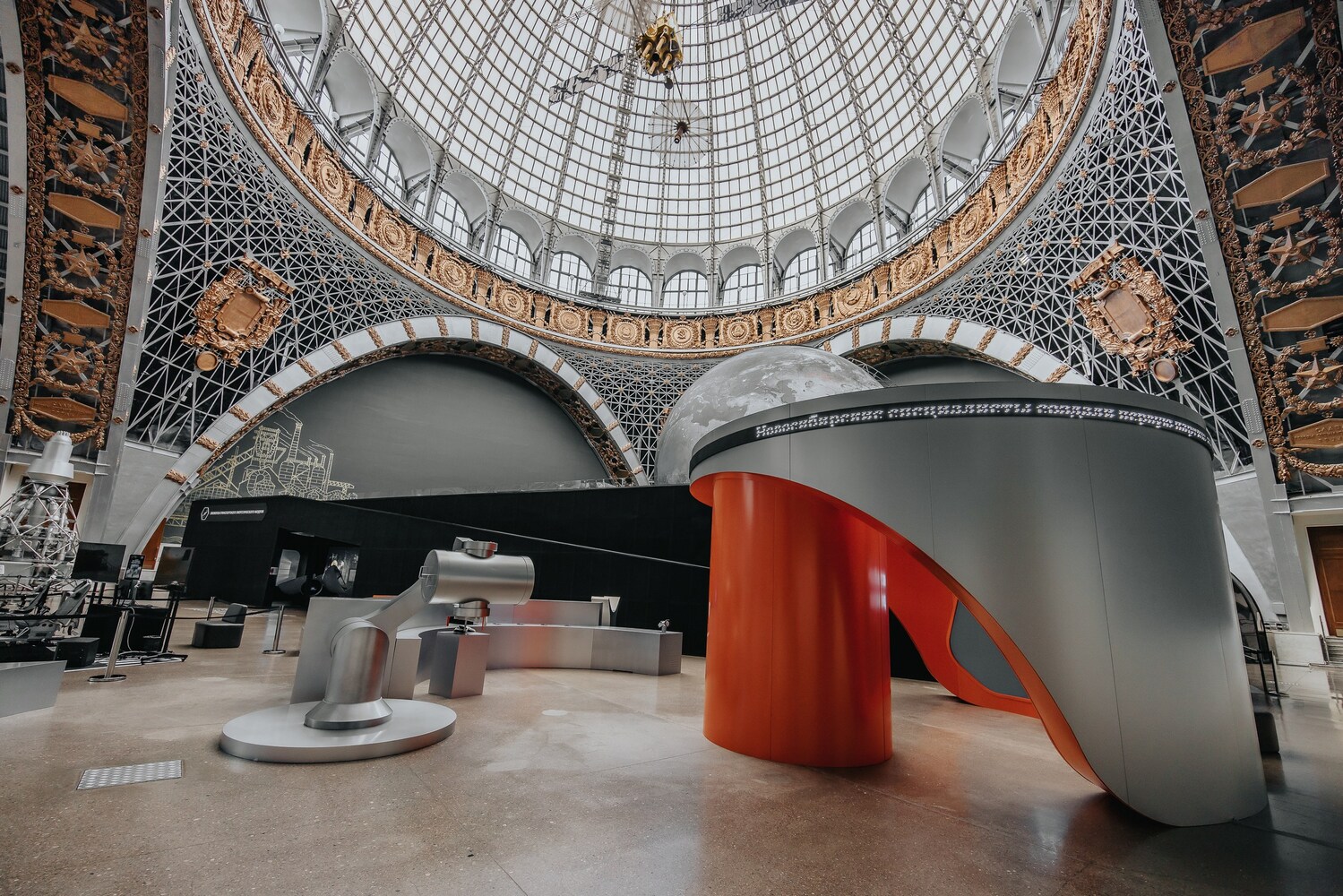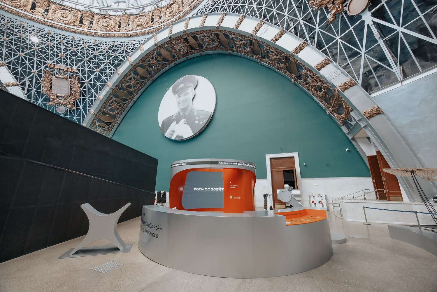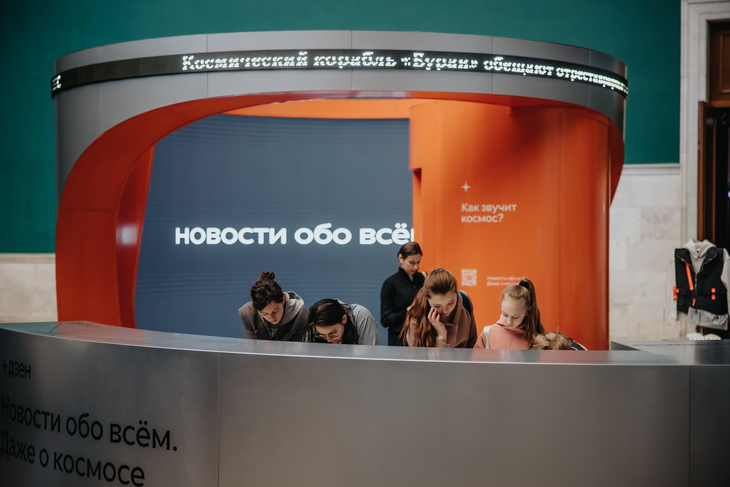 Бренд-зона — функциональный арт-объект с точками интерактивного контакта и приближения гостей к космосу на расстояние вытянутой руки: космические текстуры на панели «Прикоснуться к недосягаемому», визуализация необычных космических явлений, перчатка скафандра, интерактивный телескоп c информацией про МКС. Кульминация погружения в космические ощущения — пространство с воспроизведением сигналов и колебаний, которые можно было бы услышать за пределами планеты Земля.