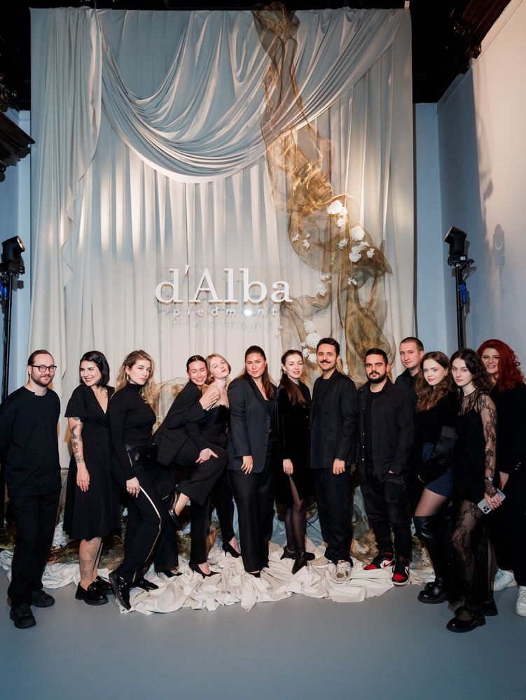 При оформлении площадки мы сделали акцент на новой главе жизни бренда и тонко подчеркнули его премиальность, создав атмосферу светского мероприятия. Важным источником вдохновения стали увлажняющие свойства продуктов d’Alba. Мы выразили эту символику с помощью световых проекций водной глади и легких тканей в фотозоне, напоминающих волны.
