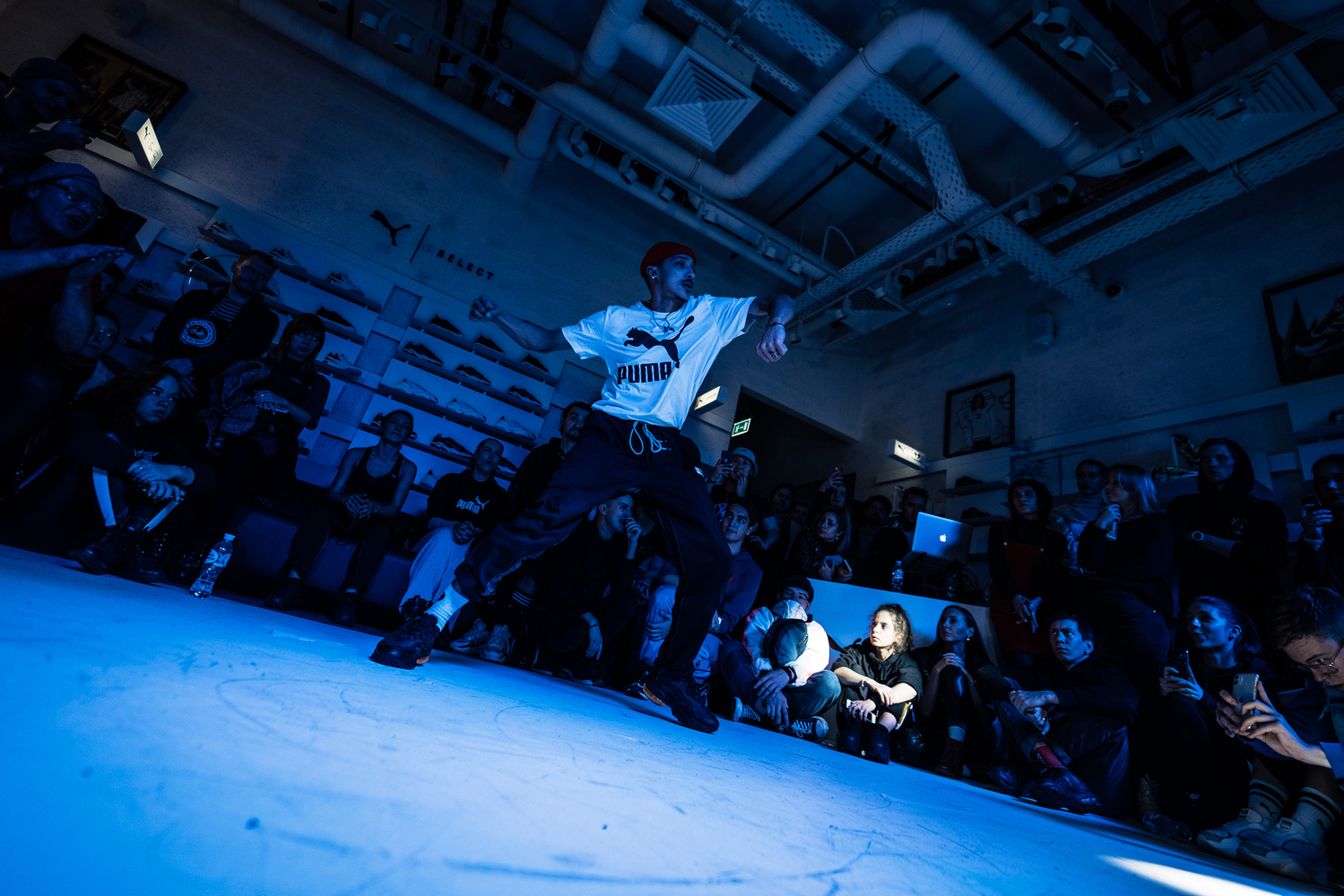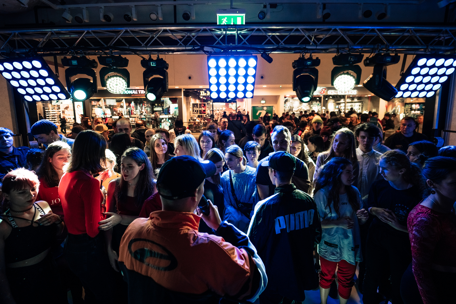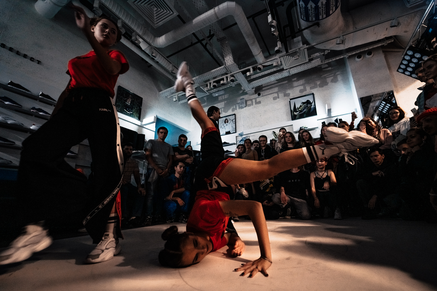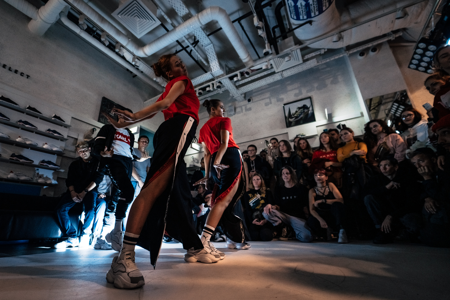 Наверное, все понимают, что магазин — это довольно ограниченная площадка, на которой в буквальном смысле сложно развернуться. Мы любим ограничения, потому что они заставляют мыслить шире. Благодаря такому парадоксальному подходу родилась идея устроить танцевальный джем прямо в магазине. Что может быть лучше тесной и дружной толчеи в красиво акцентированном пространстве?