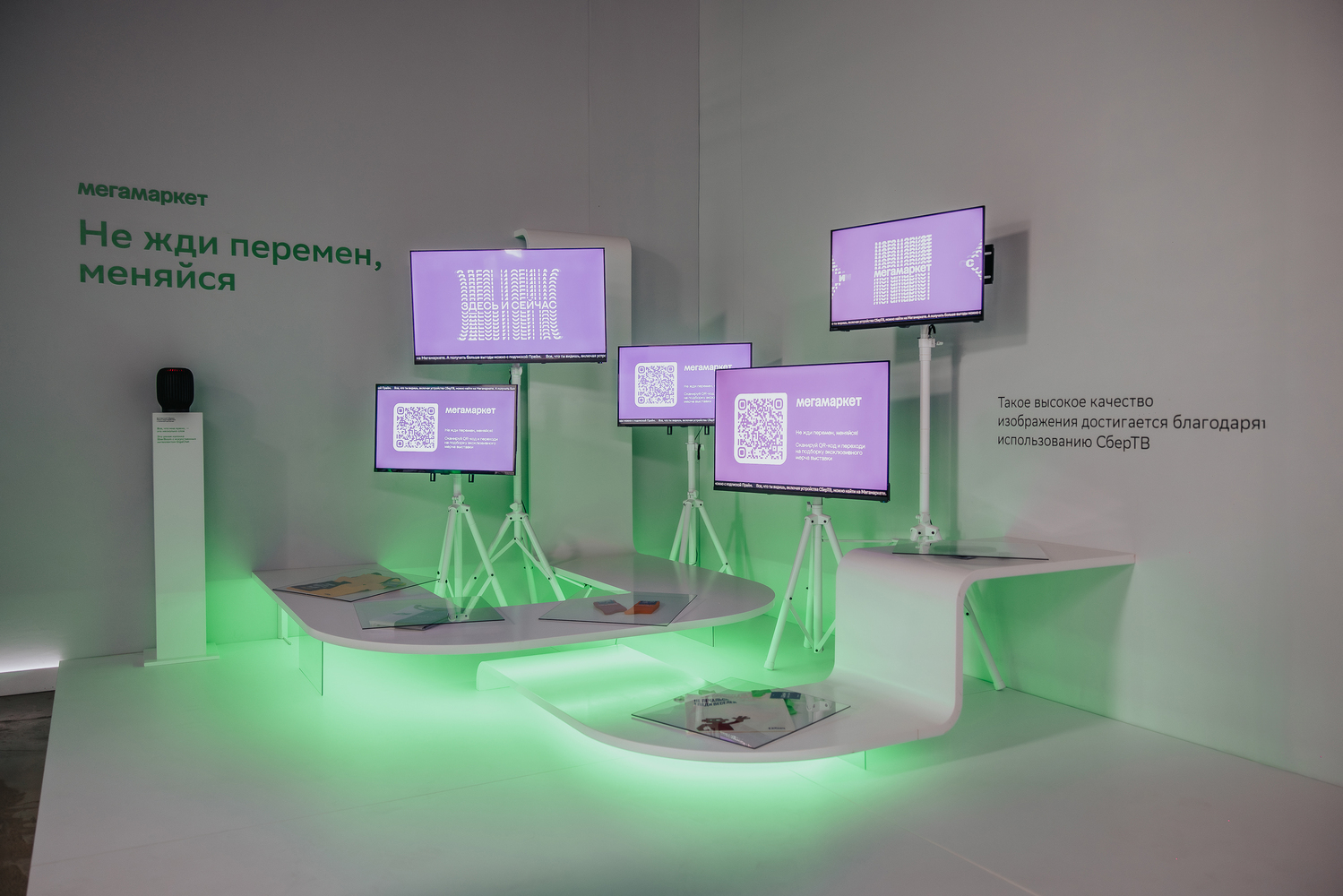 А чтобы лучше понять атмосферу иммерсивного пространства Сбера — листайте фотографии.