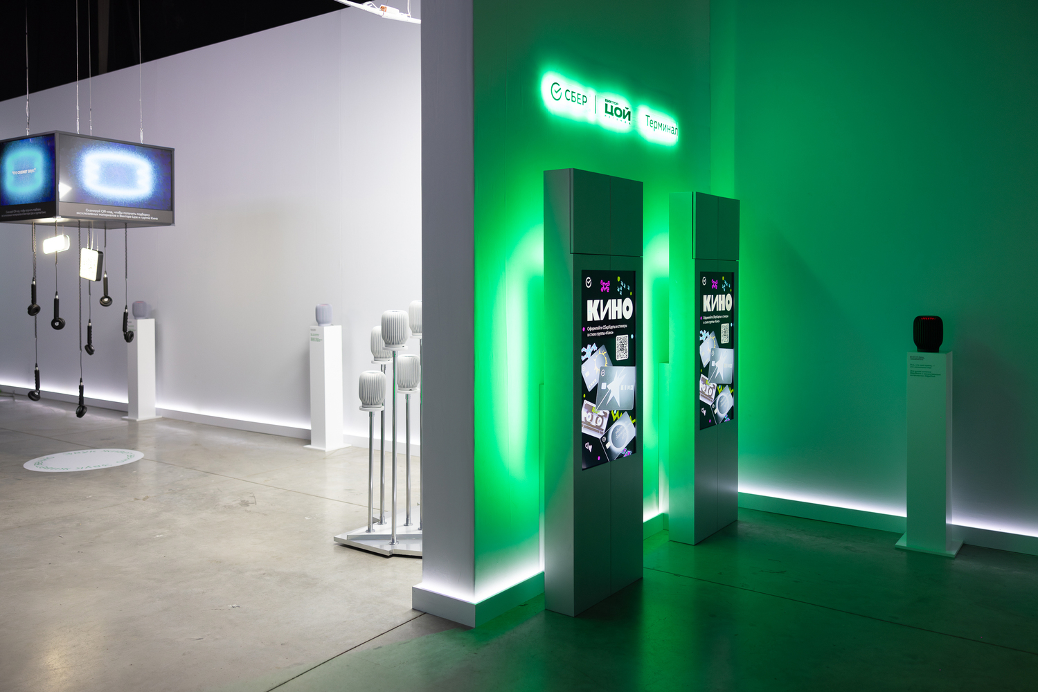 Чтобы создать имиджевый проект, органично дополняющий выставку-байопик Цоя, мы возвели восемь бренд-зон Сбера, глубоко пронизанных творчеством музыканта. На выставке представлены VR-галерея живых картин Цоя, экстерьер фильмов о нём и аудиоальманах с воспоминаниями современников о группе «Кино».