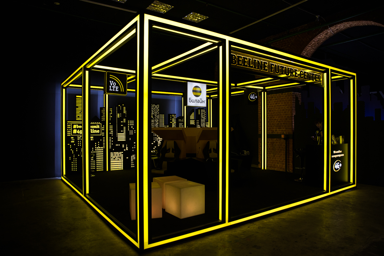 Одной из ключевых зон на выставке высоких технологий SMIT, длившейся 3 месяца, стал стенд «Билайн», придуманный в Journey. Тема инновационных технологий была поддержана tron-архитектурой стенда и VR-игрой, специально разработанной под проект. Мы дополнили систему интеграции программой лояльности, SM-поддержкой, сувенирными брендированными кардбордами и организацией интерактивного офиса «Билайн» в пространстве выставки.