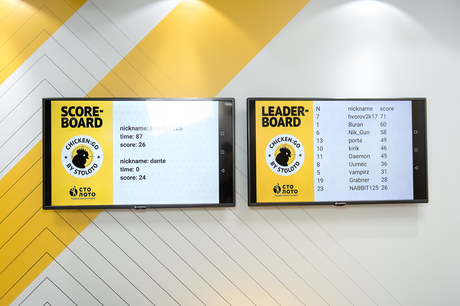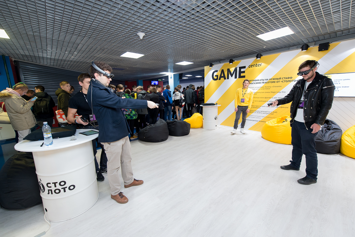 Для киберспортивного чемпионата по игре CS:GO Epicenter мы разработали уникальную тематическую игру CHICKEN:GO с отсылкой к понятному всем участникам турнира мему с курицей, которая неожиданно появлялась в разных местах. «Столото» одними из первых представили широкой аудитории для тестирования уникальный гаджет — два суперсовременных шлема Magic Leap One для игры с элементами дополненной реальности.