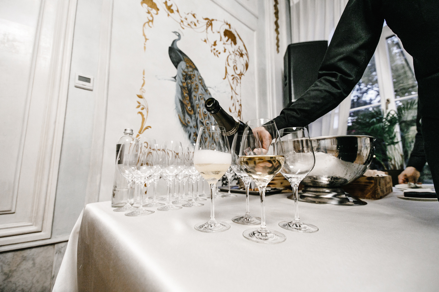По классике, вино лучше подавать с едой и развлечениями. Чем дороже вино, тем изысканнее его сопровождение. Следуя этой нехитрой логике, местом проведения званого ужина был выбран Музей шахмат. Мрамор, лепнина, винтовые лестницы и безупречно накрытые столы на сорок персон. Официанты бесшумно скользили между столиками и в перерывах между подачами блюд подливали гостям вино испанского бренда Vega Sicilia. За меню отвечал аргентинский шеф-повар Адриан Кетглас, в арсенале которого звезда Мишлена, несколько ресторанов и авторские рецепты высокой кухни. Вечер сопровождался выступлением Миши Мищенко –– пианиста, композитора и пионера жанра neoclassical в России.