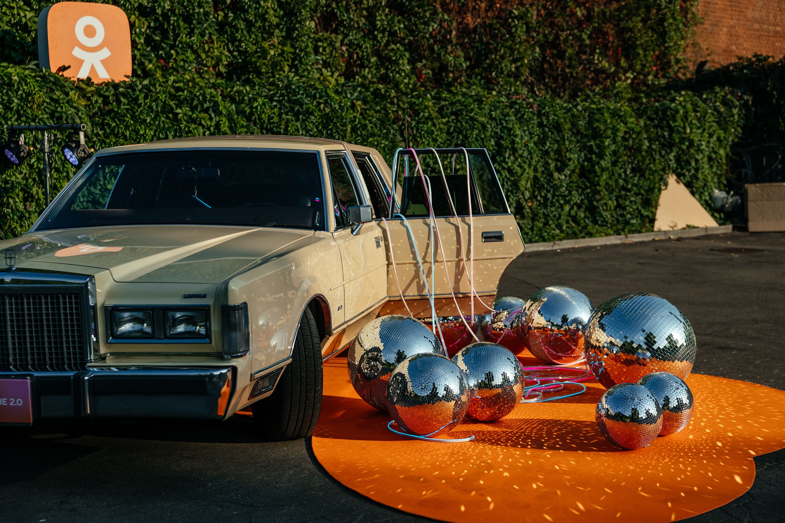Дизайн арт-объектов на площадке был вдохновлён наиболее популярными темами на платформе ОК: кулинарией, рукоделием, строительством и садоводством. Ну а снаружи антураж создавали пати-тачка и много дискошаров, на фотографию с которыми стояла целая очередь.